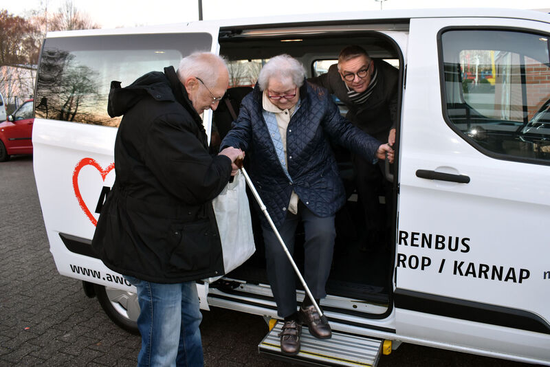 Der Tag in Karnap beginnt wie jeder Donnerstag. Der AWO Bus kurvt durch die ruhigen Wohnstraßen des Stadtteils, holt vorwiegend ältere Damen vor der Haustür ab und fährt sie zu Supermärkten der Umgebung. Nach dem Einkauf geht es für die Passagierinnen dann zurück nach Hause, wo der Busfahrer oder sein Beifahrer dann den Einkauf bis vor die Haustür oder auch direkt in die Küche trägt. Dieser Donnerstag ist trotzdem etwas besonderes, denn das Karnaper Seniorenbus-Projekt feiert den 10. Geburtstag und an diesem Jubiläumstag wird auch gleich ein nagelneuer AWO-Bus auf die Reise geschickt.