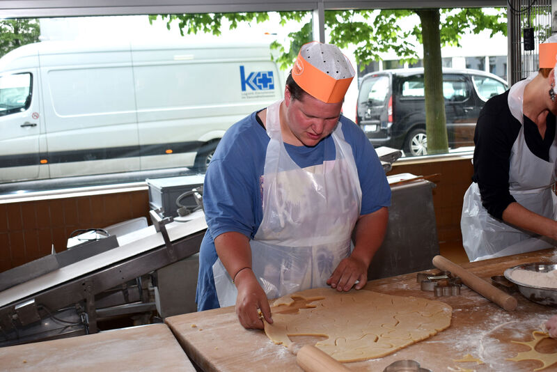 Dass süße und vor allen Dingen individuell handgefertigte Plätzchen für die 1500 individuell betreuten Tagespflegeplätze stehen, ist der Essener Bäckerei Peter zu verdanken. Das Handwerksunternehmen bot an, die Aktionswoche zu unterstützen. So fanden sich jetzt zehn Vertreterinnen und Vertreter der Tagespflege-Verbände in der Riesen-Backstube wieder und verarbeiteten rund 40 Kilogramm Mürbeteig zu leckerem Naschwerk. Dabei ging es vom Ausrollen des Teigs über das Ausstechen mit Formen bis zur Verpackung in kleine Tüten streng handwerklich zu. Betreuer Michael Husemann von Bäcker Peter leitete die Back-Neulinge, zu denen auch Anne Gerhards vom Jugendamt der Stadt gehörte, erfolgreich an - die Plätzchen können sich sehen und vor allen Dingen schmecken lassen.