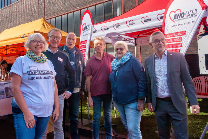 Dass das 32. Zechenfest auf Zollverein mehr war, als nur Steigerlied und Feuerwerk, bewies eine Truppe rund um Birgit Langer (Zentrum 60plus Alte Kirchstraße), Manuela Boll (HerzDame/HerzBube – Der ehrenamltiche Besuchsdienst der AWO) und Peter Sager (Vorsitzender Ortsverein Katernberg/Schonnebeck). Sie hielten am Wochenende fast sprichwörtliche die Fahne der AWO hoch und informierten über verschiedene Angebote der AWO und die vielen Möglichkeiten, sich bei der AWO ehrenamtlich aktiv zu betätigen. Unterstützt wurden sie vom Kollegen Olaf Bittner (Zentrum 60plus Butzweg) und mehreren ehrenamtlichen Helfer*innen. Auch AWO Geschäftsführer Oliver Kern schaute auf dem Gelände von Schacht XII vorbei: „Vielen Dank an unser Team vor Ort für den tollen Einsatz!“ Fotos. Hase/AWO Essen