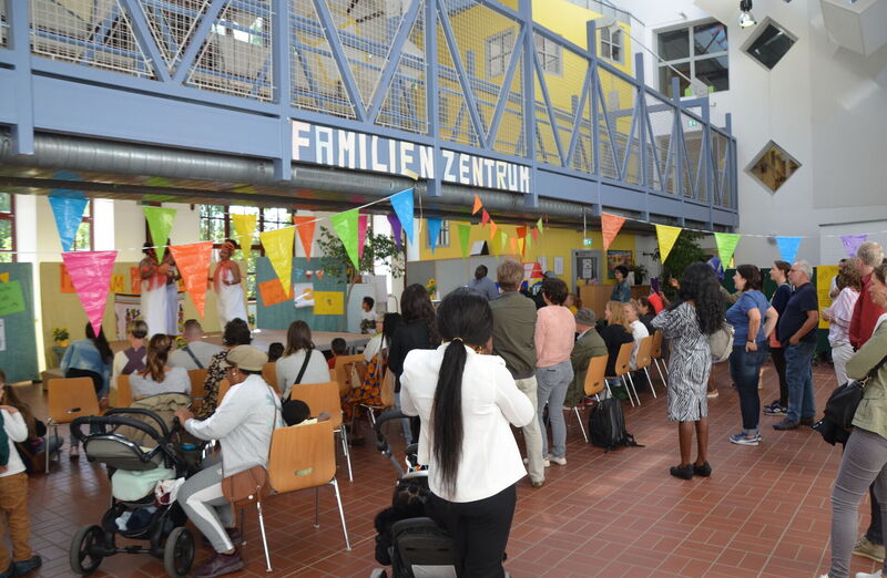 Yvonne Hartung, Familiencoach in der AWO-Kita Schalthaus Beisen, die auch viele afrikastämmige Kinder besuchen, erklärt warum das wichtig ist: „Viele Zugezogene haben gar keine Anbindung hier. Wir möchten heute eine Bühne bieten, auf der sich die Menschen besser kennenlernen können“, führt sie aus. Missverständnisse aufklären, etwa in Fragen der Kindererziehung, aber auch und vor allem die Menschen miteinander ins Gespräch bringen: Nicht umsonst heißt das Fest des Integrationsrates des Bezirks, in dem die beteiligten Institutionen an einem Tisch sitzen, auch „Fest am Palaver-Baum“. Yvonne Hartung: „In Afrika trifft man sich häufig unter einem Baum, um Probleme mittels ordentlich ,Palavern‘, also Gespräch, aus der Welt zu schaffen. Wir greifen das hier gerne auf.“