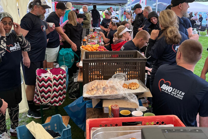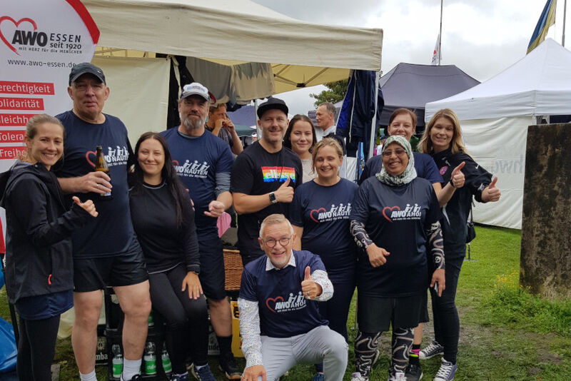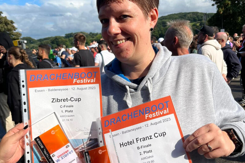 Dass Drachenbootfahren ein Outdoorsport ist und damit bei jedem Wetter stattfindet, war allen Teilnehmer*innen bewusst. Dass es aber rund um den Baldeneysee ebenso nass war wie im See selbst, damit war im August nicht unbedingt zu rechnen. Trotzdem gingen alle 30 Teams mit bester Laune pünktlich an den Start. Und mit ihnen AWO Vorständin Claudia Osterholt und 32 weitere, hoch motivierte Teilnehmer*innen der AWO Essen in den Teams AWOnauten und AWOahoi. Ihre Drachenboote belegten die Plätze 1 und 2 in ihren Gruppen. Dass die AWO-Mitarbeiter*innen die entscheidende Bootsnasenlänge vorne lagen, lag sicher auch an der hervorragenden Verpflegung durch das „Kurt“, „Friedrich“ und „Marie“ sowie an den Anfeuerungsrufen von Bewohner*innen aus dem Kurt-Schumacher-Zentrum und AWO Vorstand Oliver Kern.