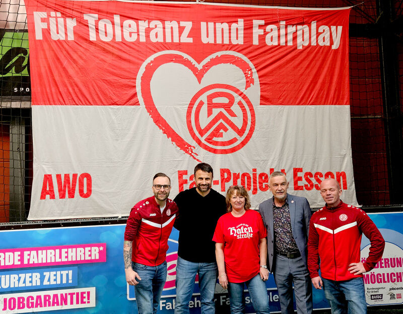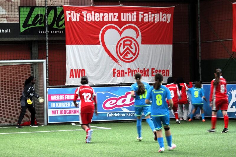 Seit 2006 ruft das AWO Fanprojekt Essen zu seinem Dauerbrenner und in diesem Jahr gab es mit dem 30. Geburtstag des Fanprojektes für die Anhänger des Fußballclubs Rot-Weiss Essen auch noch etwas Besonderes zu feiern: Um die 50 Mädchen und Jungen der 8./9. Klassen aus insgesamt sieben Schulen in Essen kickten jetzt mit beim Turnier „Kick Racism Out“ im „LaOla Sportcenter“ an der Altenessener Heßlerstraße um die Wette. Auf die Beine gestellt hatte das Ganze das Orga-Trio vom Fanprojekt Claudia Wilhelm, Stephan Berchner und Matthias Schulz mit Unterstützung der Agentur Contact aus Oberhausen. Begrüßt wurden die ca. 13 bis 15 Jahre alten Jugendlichen von AWO Vorstand Oliver Kern und RWE-Vorstandsmitglied Alexander Rang.