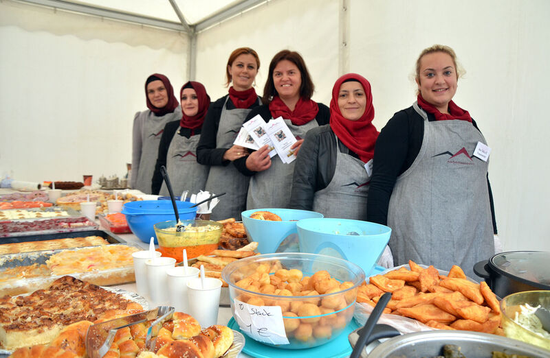 So bot die arabische Senioren-Frauengruppe Altenessen am Samstag zahlreiche arabische Spezialitäten und einiges mehr an. Am Sonntag zeigte sich an selber Stelle die Internationale Seniorengruppe Altenessen und hatte viele russische und wolgadeutsche Spezialitäten mit dabei. Außerdem konnten die Festbesucher Handarbeiten der Senioren an beiden Tagen erstehen. War der erste Stand eher vom starken Engagement des „schwachen“ Geschlechtes geprägt, so gaben am zweiten Stand die Männer den Ton an. „Väter im Dialog“ ist ein fester Bestandteil des AWO Jugendhilfe Netzwerkes in Katernberg und bastelte mit Kindern kleine Rhythmusinstrumente mit Pappe und Kronkorken. Außerdem stellten die Väter ihre vielfältigen Aktivitäten, unter anderem eine eigene Sportgruppe, vor. Freuen konnten sich die AWO-Mitarbeiter über die Standnachbarinnen vom Ana-Tolia Frauenverein. 2008 mit Unterstützung des AWO Jugendhilfe Netzwerks in Katernberg gegründet und die ersten acht Jahre von der AWO begleitet, hat sich der eigenständige Verein zu einer starken Gruppe mit 65 Mitgliedern prächtig entwickelt.