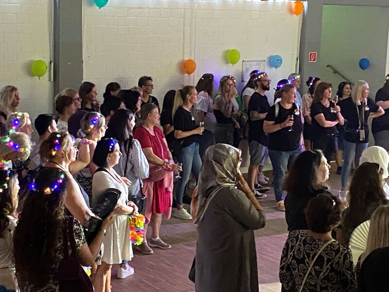 Für wildes Tanzen sorgten später DJ und Live-Band. Neben einem vielfältigen Buffet, welches der Kreis der syrischen Frauen bereitete, gab es von der „AWO Herzensküche“ Leckeres vom Grill und aus der Pfanne. An Getränken und einer reich gefüllten Candybar fehlte es ebenso nicht. Neben einer „Bambus Tiki Bar“ mit leckeren Cocktails, passend zum Festthema, gab es sogar eine Chillout-Zone, in der sich die Mitarbeitenden zum Ausruhen zurückziehen konnten.