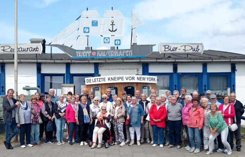 Am nächsten Tag gab es mit einem kundigen Stadtführer viel über Bremerhaven zu sehen und zu erfahren. Die Stadt wurde im Zweiten Weltkrieg völlig zerstört, weshalb es auch keine Altstadt mehr gibt. Die Rundfahrt führte durch den Fischereihafen, die Innenstadt mit Museumshafen bis in die Überseehäfen. Hier konnte man die Verschiffung von zigtausenden Containern und PKWs beobachten. Ein Ausmaß, dass nur durch Computer gesteuerte Programme erfolgen kann. Das nächste Highlight "Treffpunkt Kaiserhafen". hatte der Fahrer Andre auserwählt. In „der letzten Kneipe vor New York" glich die Inneneinrichtung einem Museum. Alles, was mit der Seefahrt in Verbindung gebracht wird, war hier Dekoration. Ein hervorragendes Essen gab es auch.