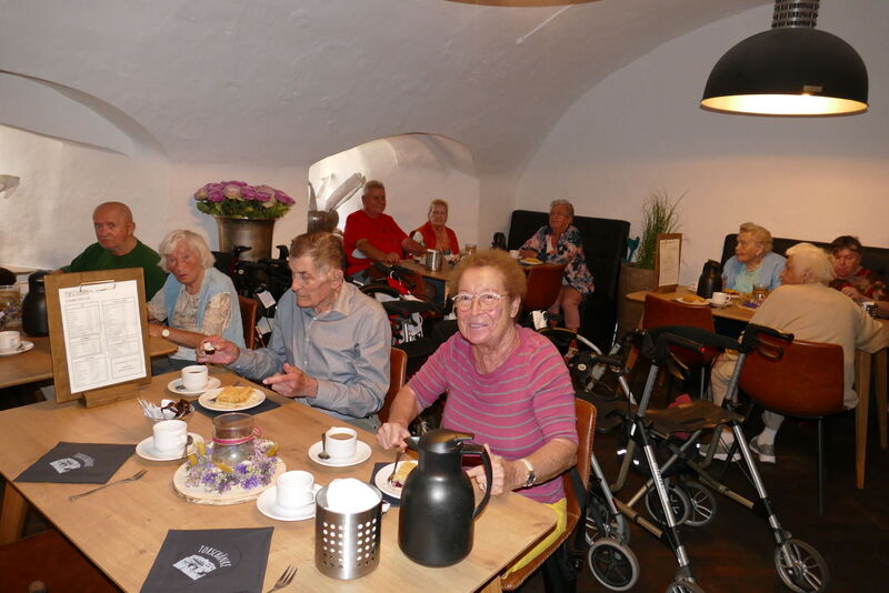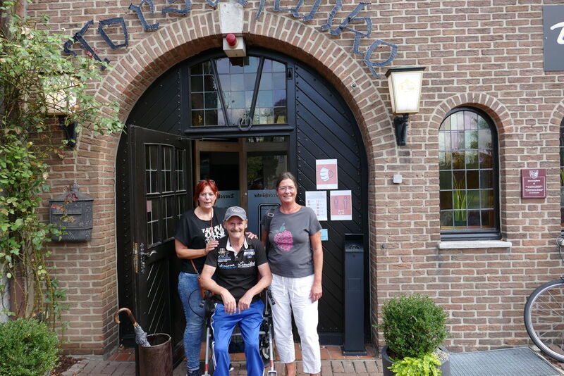 Gesagt getan. Los ging es kürzlich nach dem Mittagessen der Senior*innen nach Brüggen im Nettetal. 30 reiselustige Bewohner*innen bestiegen den Bus und fuhren in die historische Altstadt, um dort in der „Torschänke“ einzukehren, die Burg zu erkunden, die Geschäfte zu begutachten und am Abend an der Schwelm bei einem gekühlten Getränk in der Abendsonne Kartoffelsalat und Würstchen serviert zu bekommen. Da das Wetter optimal war, war die Stimmung sehr entspannt.