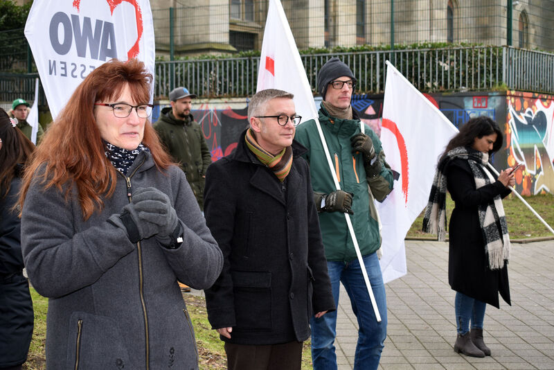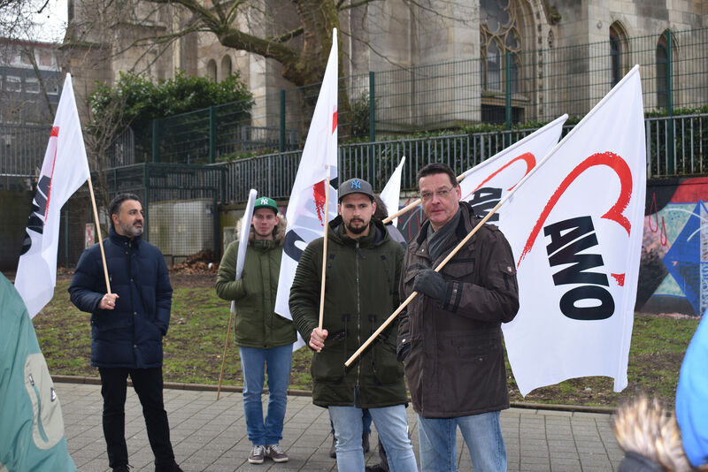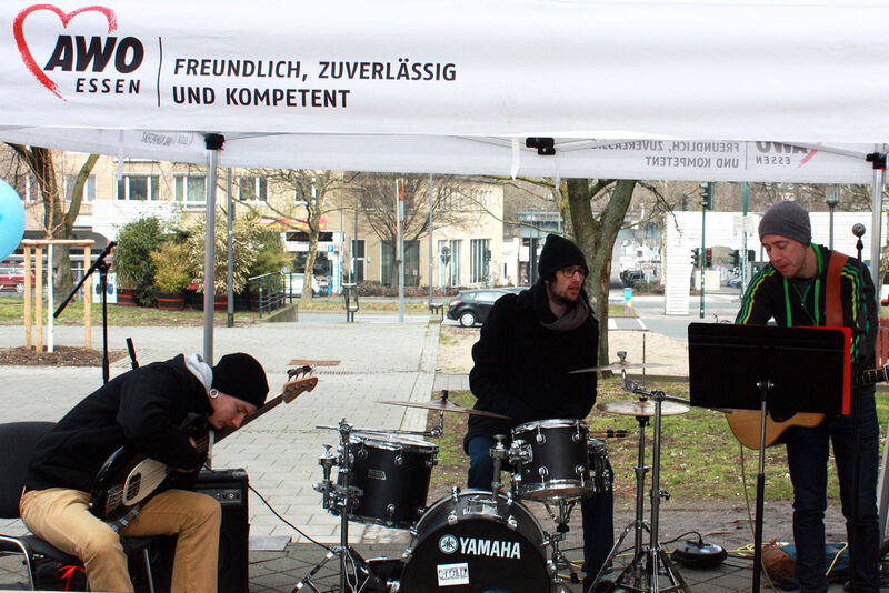 Viele Mitarbeiter, die vor der AWO-Geschäftsstelle buchstäblich Flagge zeigten, haben selbst einen Migrationshintergrund. Das Programm des Vormittags wurde vom Essener AWO Kreisverband gemeinsam mit dem Jugendwerk der AWO entwickelt. So hat die Band „Menschenrechte“ die bei ihrem Auftritt viel Beifall erhielt, ihre Probenräume im Jugendzentrum Schonnebeck, das vom Jugendwerk der AWO betrieben wird.
