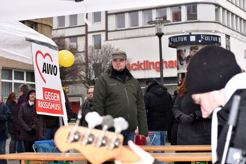 Mit einem musikalischen Programm, Spielen und vielen Informationen machten die AWO-Aktiven auf dem Viehofer Platz klar, dass ein offenes Herz keinen Rassismus kennt. Trotz der Frühlingskälte blieben viele Passanten stehen, hörten der Band „Menschenrechte“ zu und nutzten die Zeit zu Gesprächen. Die AWO zeigte, dass sie selbst ein gutes Beispiel für Anti-Rassismus ist.