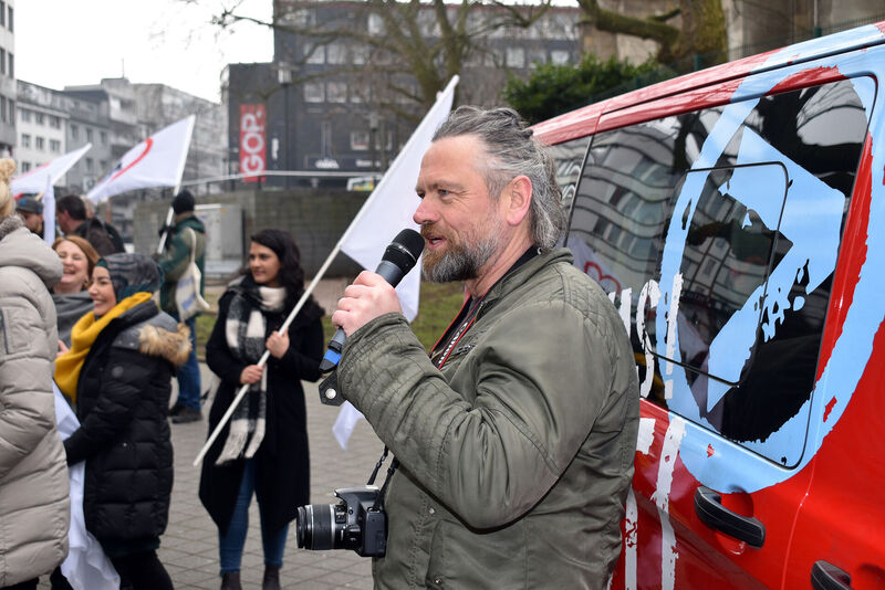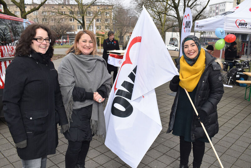 Gemeinsam mit vielen Organisationen, Initiativen und Einrichtungen in ganz Deutschland engagiert sich auch die Essener AWO im Rahmen der Internationalen Aktionswochen gegen Rassismus. Am Aktionstag war die Haltung des Essener Kreisverbandes in der nördlichen City weder zu überhören noch zu übersehen.