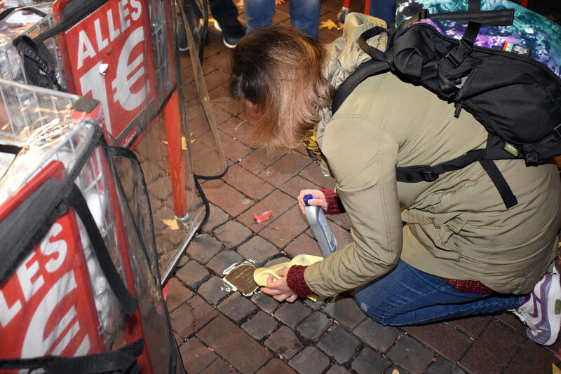 Mit einer ganz konkreten Aktion erinnerten die AWO-Ortsvereine aus dem Großraum Borbeck zusammen mit den SPD-Ortsvereinen aus dem gleichen Bereich am 9. November an die Pogrome vor 80 Jahren.