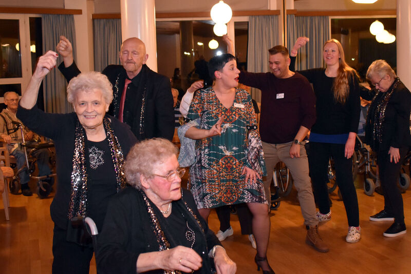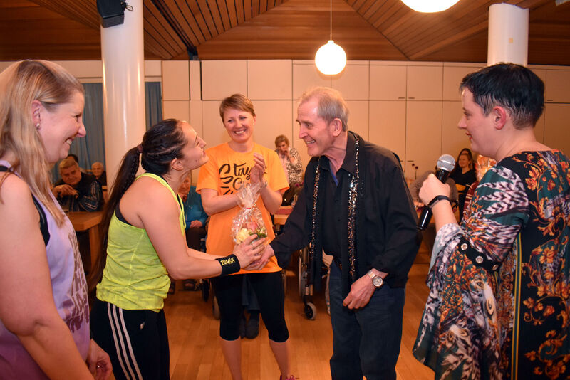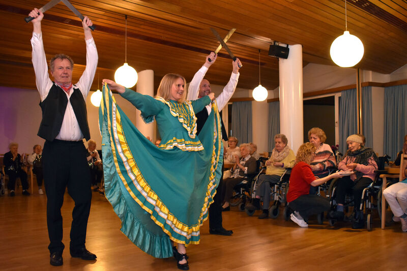 Sogar Gäste der Veranstaltung wurden kurzerhand in das Programm einbezogen. Viel beklatscht war auch die „kesse Sohle, die ein nicht mehr ganz taufrischer Bewohner mit einer jungen Dame elegant und gekonnt aufs Parkett legte.