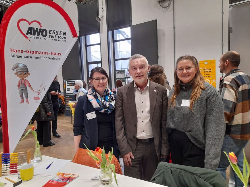 „Die hohe Nachfrage nach Informationen, wie man sich ehrenamtlich einbringen kann, war sehr erfreulich. Der Altersschwerpunkt der Interessierten lag etwa bei 65 bis 75 Jahren. Die ,jungen Älteren‘ sind aktiv!“, stellt Karlheinz Freudenberg, bei der AWO Essen u.a. Ansprechpartner für das ehrenamtliche Engagement älterer Menschen, fest. Auf der Ehrenamts-Messe der Ehrenamt Agentur Essen in der Zeche Carl informierten er und seine Kolleg*innen über die vielfältigen Möglichkeiten, sich bei der AWO Essen zu betätigen. „Das Spektrum ist weit, reicht von der Unterstützung von Menschen im sozialen Bereich, etwa durch Beratung, über die Mithilfe bei Veranstaltungen und Projekten bis hin zu Wanderleitungen oder sonstigem Einbringen kreativer Ideen – und das sind auch nur Beispiele“, sagt Freudenberg. Es muss längst nicht immer der AWO Ortsverein um die Ecke sein, aber auch dort gibt es vielfältige Betätigungsmöglichkeiten – Interessierte sind hier stets willkommen!