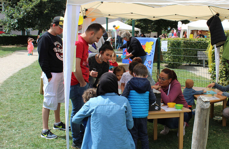 Bei dem dreifachen Fest hatten Kita-Mitarbeiterinnen und Mitarbeiter, Eltern und Kinder einiges auf die Beine gestellt. Unter anderem sorgten ein Märchenzelt in dem Eltern in unterschiedlichen Sprachen vorlasen, ein Bilderbuchkino, das in vier Sprachen gemeinsam mit Eltern präsentiert wurde, und eine Bastelwerkstatt für gute Unterhaltung. Mit Wurfspielen, Basteln von Traumfängern, internationalem Papierschmuck und selbstgestalteten Weltkugeln sowie Bewegungsspielen „rund um die Welt“ wurde es nicht langweilig.