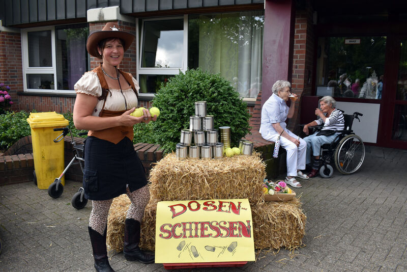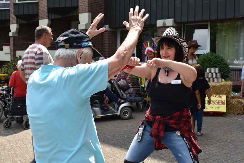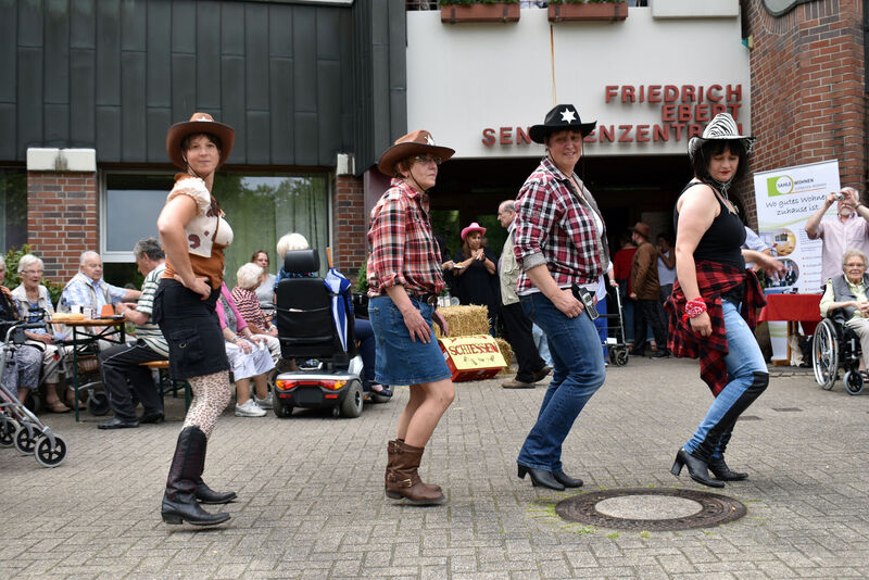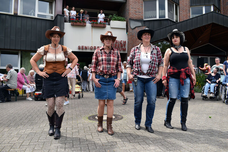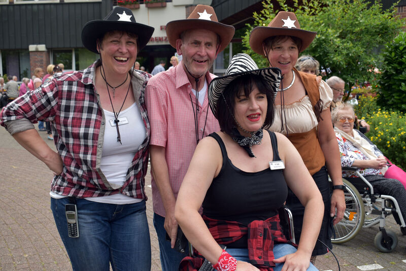 Wenn aus dem Vorplatz eine Pferdeweide wird, wenn Mitarbeiterinnen zu Country-Songs einen Line-Dance präsentieren und Rollatoren einen Sattel bekommen, dann wird der Friedrich-Ebert-Zentrum der AWO zur Westernstadt und das Seniorenheim feiert sein Sommerfest.