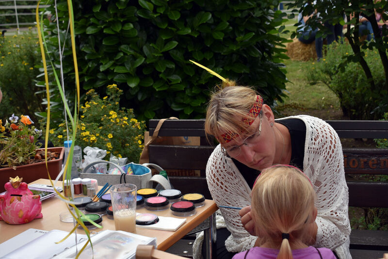 Kaffee, Kuchen und Gegrilltes sorgten für die Stärkung von Alt und Jung. Die Kinder hatten ihre Freude am Schminkstand und übten sich am Dosen-Wurfstand, den ein zünftiges „AWO-Cowgirl“ organisierte.