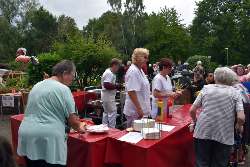 Die Bewohnerinnen und Bewohner genossen das Fest und hatten sichtlich ihre Freude, wenn sie einmal zu Country-Klängen ein paar Tanzschritte wagten. „Immer schön in Bewegung bleiben, dann wirst Du auch über 90 Jahre“, spornte eine betagter Senior seine junge Tanzpartnerin an.