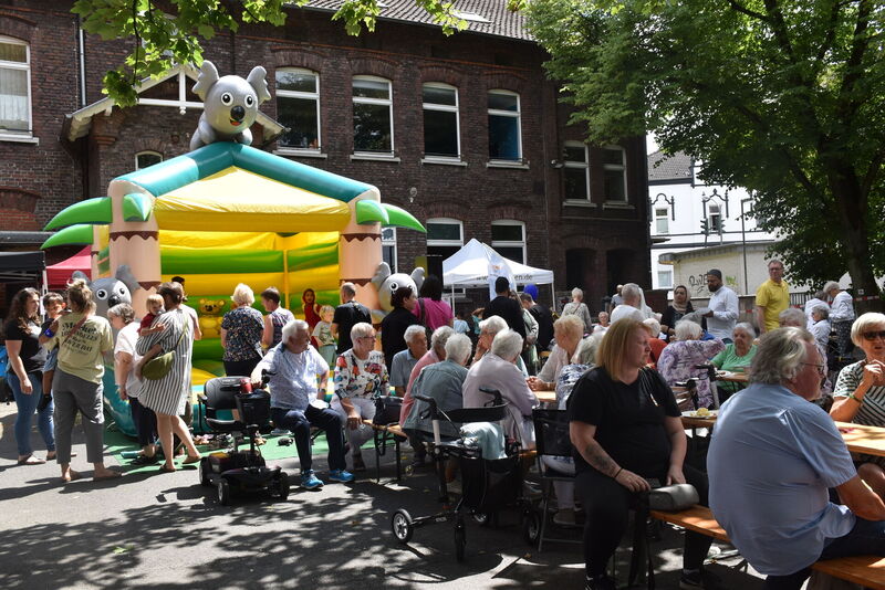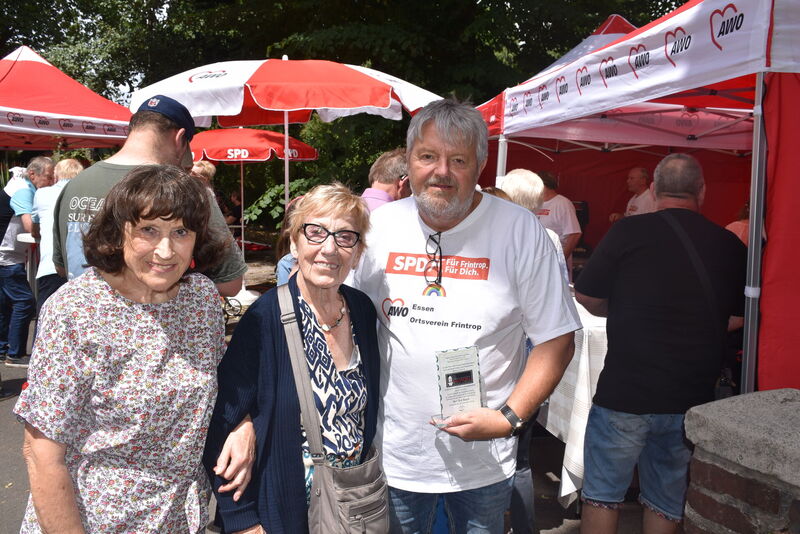 Das „Familienfest mit Freunden“ des AWO Ortsvereins Frintrop, den AWO Kitas Am Heilgraben und Frintroper Höhe, dem AWO Fritz-Kinnigkeit-Haus, der Ahmadiyya-Gemeinde aus Mülheim, der 1. Großen Karnevalsgesellschaft Fidele Frintroper 1951, der Jugendhilfe Essen, den Zentren 60plus Butzweg und Frintroper Straße, der SPD Frintrop und weiteren war ein Riesenerfolg: Zahllose Besucher*innen in jedem Alter kamen zum Hof der ehemaligen Stifterschule an der Unterstraße und verwandelten das Außengelände in ein kleines Stadtteilfest. Dirk Busch, Vorsitzender im AWO Ortsverein Frintrop, freut sich: „Das war eine tolle Sache! Wir vom Ortsverein konnten unser Sommerfest einfach nicht mehr alleine stemmen und so haben wir uns mit befreundeten Institutionen entschlossen, ein gemeinsames Fest zu machen. Und das hat sehr gut funktioniert! Vielen Dank an alle Helferinnen und Helfer.“
