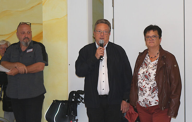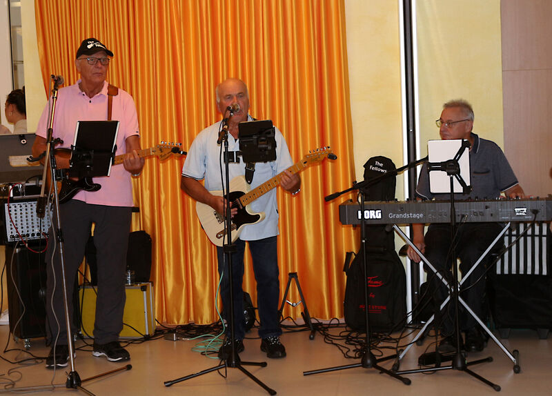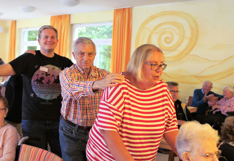 Bevor es richtig losging, also direkt nach seiner Begrüßung, gratulierte Hausleiter Andreas Sümnik Bewohnerin Frau Ludwigs mit dickem Blumenstrauß zum Geburtstag. Mit Unterstützung der Gastband „The Fellows“ brachte der ganze Saal mit „Happy Birthday“ ein Geburtstagsständchen.