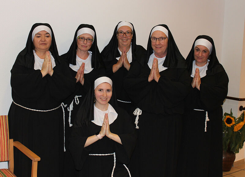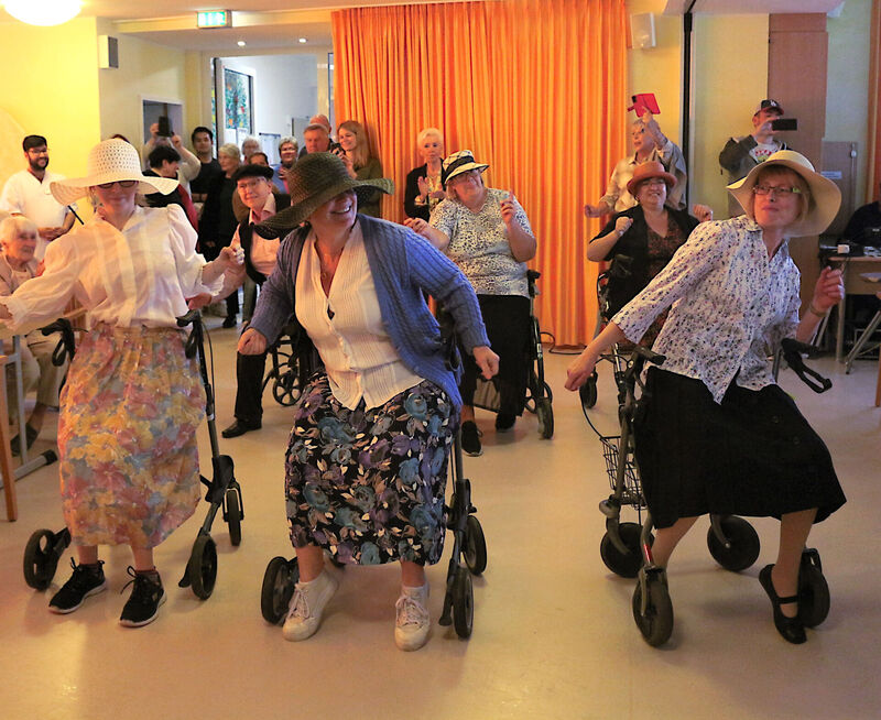Cordula Erlhoff vom Sozialen Dienst des Hauses berichtet: „ Und die heizten anschließend den ganzen Saal mit ihren gut ausgewählten Liedern ein. Es folgten Auftritte der ,Essener Prinzengarde‘, die sehr spontan für einen abgesagten Programmpunkt eingesprungen waren--dafür danken wir ihnen sehr! Hinterher zeigte eine sechsköpfige Seniorengruppe ihr Können mit dem Rollator. Diese waren verkleidete Mitarbeiterinnen aus der Pflege, Betreuung und dem Sozialen Dienst. Als Zugabe kamen sie noch einmal als Ordensschwestern verkleidet und tanzten zu einem Lied aus ,Sister Act‘. Die Stimmung im Saal wurde immer besser und den Abschluss gestaltete die Schlagerpiratin Marina Kirsten mit ihrem Mann Ian. Bis zum Schluss wurde getanzt, geschunkelt und auch eine Polonaise lief durch den Saal. Wir waren uns alle einig, so schön gefeiert hatten wir schon lange nicht mehr.“