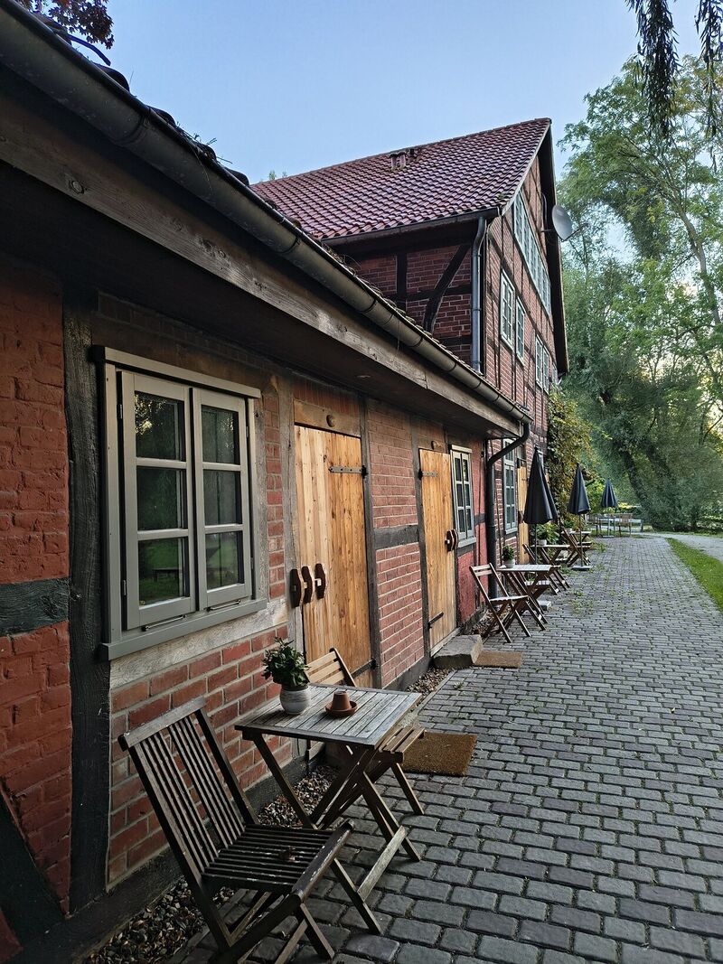 „Bei herrlichem Wetter, das uns die ganze Woche über begleiten sollte, starteten wir mit 32 Personen (je zur Hälfte von der AWO Werden und von der AWO Kettwig) in Richtung Lüneburger Heide. Die Mittagspause fand in Bad Salzuflen statt, wo wir nach einem Spaziergang eine Pause in einem Gartenlokal gemacht haben und Zwiebelkuchen mit Federweißem zwischen den großen Salinen genossen haben. Am späten Nachmittag erreichten wir dann unsere erste Station, das Deutsche Kartoffelhotel in Lübeln (Gemeinde Küsten). Einige waren vor vier Jahren schon einmal in dem urigen Hotel mit Kopfsteinpflaster im Innenhof, welches sehr idyllisch und ruhig in einem Rundlingsdorf im Wendland liegt.