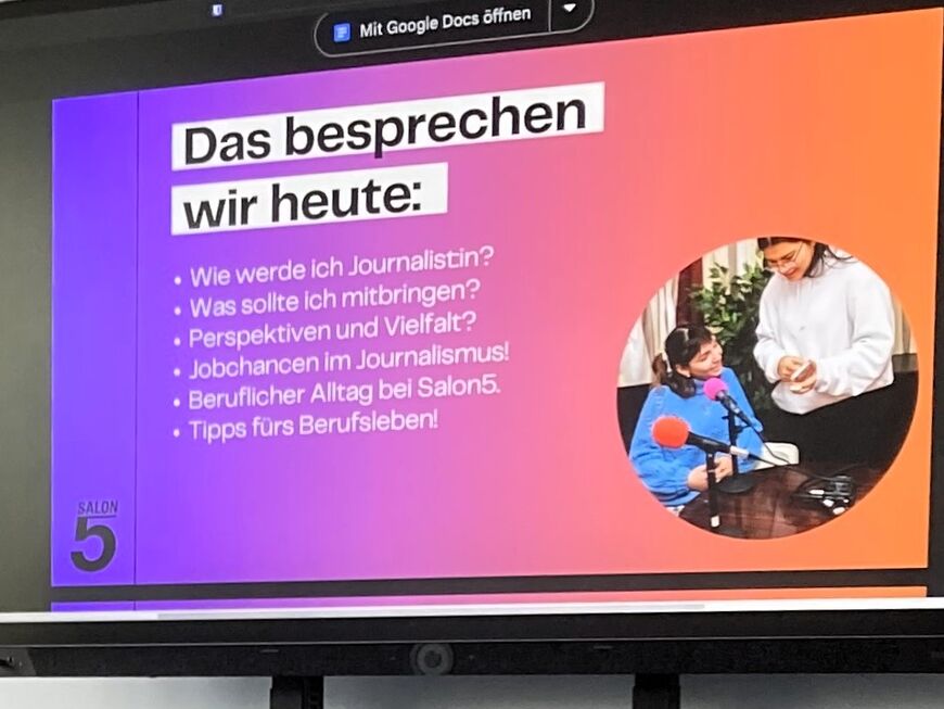 Çaǧla Sorgun von der AWO-Integrationsagentur betont den Mehrwert des Projekts: „Das Angebot von Salon5 ist eine großartige Gelegenheit für Jugendliche, ihre Medienkompetenz zu stärken und den Journalismus als möglichen Beruf kennenzulernen. Hier arbeiten sie gemeinsam mit Profis und erhalten wertvolle Einblicke.“