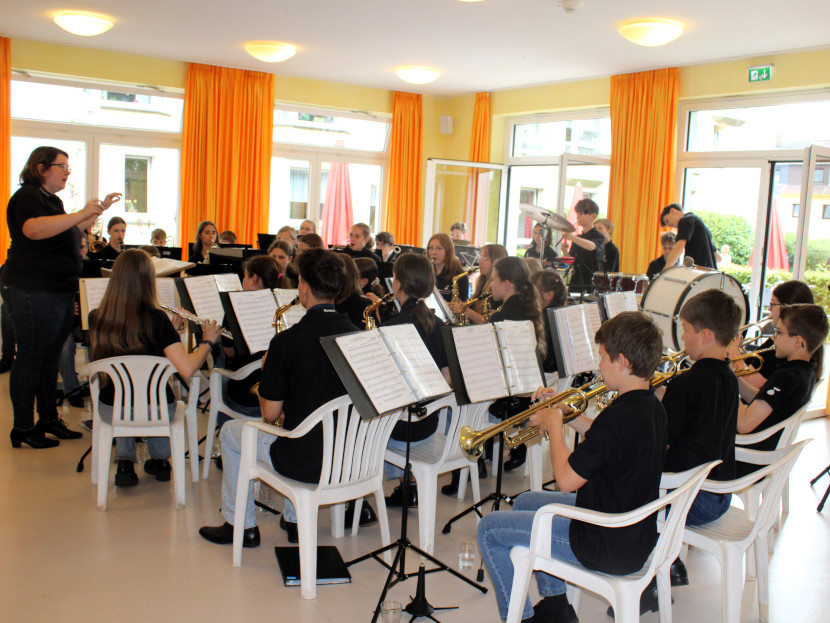Kürzlich veranstaltete das Schönebecker Jugendblasorchester im Marie-Juchacz-Haus ein „Brückenschlagkonzert“. Bei diesen ehrenamtlichen Konzerten geht es vor allem darum, mit Hilfe der Musik eine Brücke zwischen Alt und Jung zu schlagen. Im Rahmen des Konzertes versammelten sich 34 Kinder und Jugendliche mit ihren Instrumenten und etwa 50 Bewohner*innen im Saal des Seniorenzentrums. Alle strahlten und schnell wurde bei bekannten Liedern wie dem „Schneewalzer“, „Lustig ist das Zigeunerleben“ sowie Liedern von Michael Jackson und den Beatles mitgesungen und geschunkelt. Auch einige Mitarbeiter kamen vorbei und blieben ein paar Minuten, um dem beeindruckenden Orchester zu lauschen. Nach einer Stunde war das Konzert viel zu schnell vergangen und bei der Zugabe „Steigerlied“ sangen alle noch einmal kräftig mit.