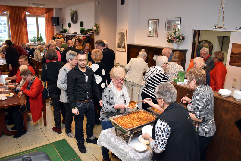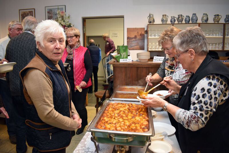Nach den Reden und den intensiven Gesprächen an den Tischen freuten sich Mitglieder, Gäste und Freunde auf den inzwischen schon legendären „AWO Groß-Borbecker Curry-Wurst-Topf“, der von Karin Phillips und Helga Rabe präsentiert wurde.