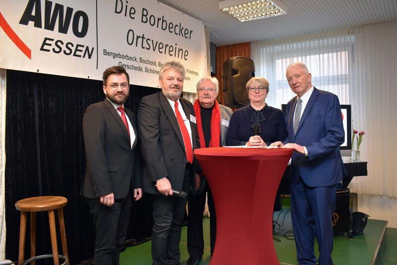 Durch den stimmungsvollen Empfang, an dem Repräsentanten der Stadtgesellschaft weit über den Borbecker Raum hinaus teilnahmen, führten die AWO Ortsvereinsvorsitzenden und Kreisvorstandmitglieder Dirk Bush und Ulrich Schulte-Wieschen. Sie konnten unter anderem auch Essener SPD-Vorsitzenden und SPD-Landtagsfraktion Thomas Kutschaty begrüßen. Auch Britta Altenkamp, Vorsitzende des AWO Bezirksverbandes Niederrhein und SPD Landtagsabgeordnete, stieß später noch zur Festgesellschaft.