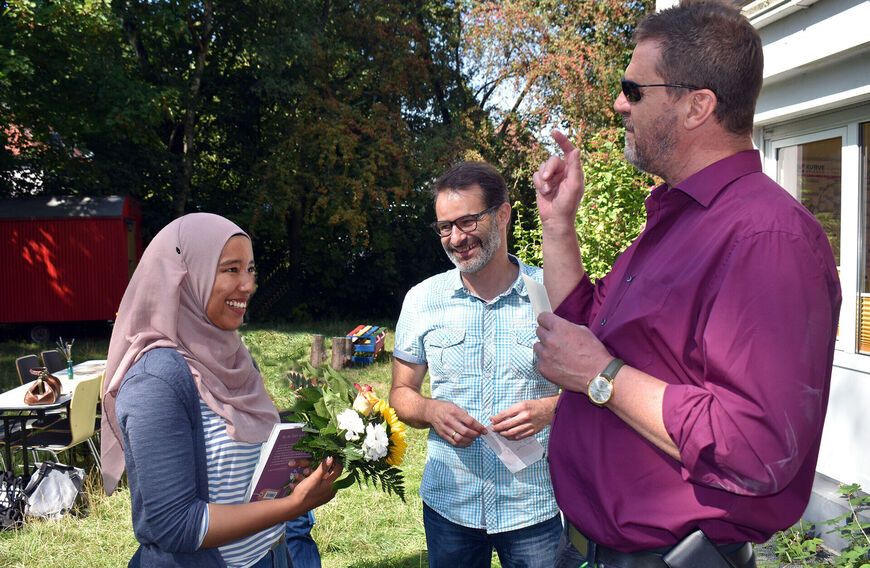 Bei einer kleinen Abschiedsfeier auf dem Gelände des Jugendhilfe-Netzwerks der AWO in Katernberg stellten die Wegbegleiter noch einmal heraus, mit welchem Engagement Souad Zenzoul am Erfolg des Projektes beteiligt war. AWO Referatsleiter Frank Bente und Thomas Rüth als Leiter des Jugendhilfe-Netzwerks bedauerten sehr, eine Kollegin zu verlieren, die mit so viel Herzblut an ihre Aufgaben herangegangen sei. Souad Zenzoul selbst betonte, dass sie auch mit einem weinenden Auge Abschied nehme: „Es ist keine Entscheidung gegen das Projekt, sondern es ergab sich etwas, das persönlich besser passt. Für mich war das nie nur ein Job. Ich wünsche mir, dass das meine Nachfolgerin oder mein Nachfolger auch so sieht.“