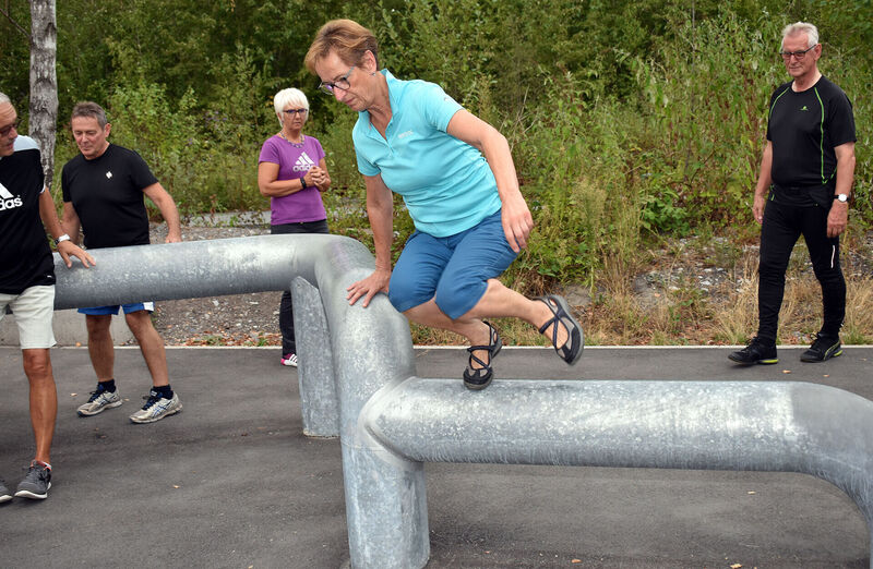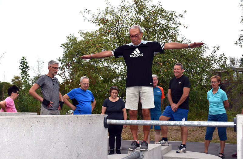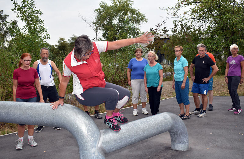 Da staunten die Jugendlichen, die vorher noch auf hohen Mauern balancierten und von Stange zu Stange durch die Luft flogen, nicht schlecht, als die wesentlich lebenserfahreneren Damen und Herren erst einmal im niedrigen Bereich der Anlage mit teilweise unerwarteter Eleganz die Hindernisse überwanden. Vorher hatten sie sich mit dem Sinn und Ziel von Parkour, möglichst elegant und sportlich auf direktem Weg von Punkt A zu Punkt B zu gelangen, vertraut gemacht.