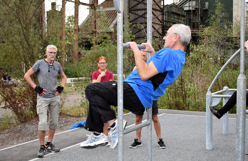 Seit gut einem Jahr zieht die Parkour-Anlage im Schatten der Zollverein-Kokerei immer mehr Gäste aus der näheren und weiteren Umgebung an. Das von der Essener AWO betriebene Trainingsgelände gilt als das schönste und größte seiner Art im Ruhrgebiet und ist zum Treffpunkt der jungen Traceure, wie sich die Parkour-Sportler nennen, geworden. Am Dienstagabend erlebten die Hindernisse auf dem Welterbe-Gelände eine absolute Premiere: Erstmals hatte die AWO zu einem Ü50-Training eingeladen und rund zwei Dutzend Damen und Herren im sechsten und siebten Lebensjahrzehnt trafen sich, um mit Trainer Georg Mathes (52) erste Übungen zu absolvieren.