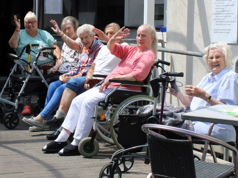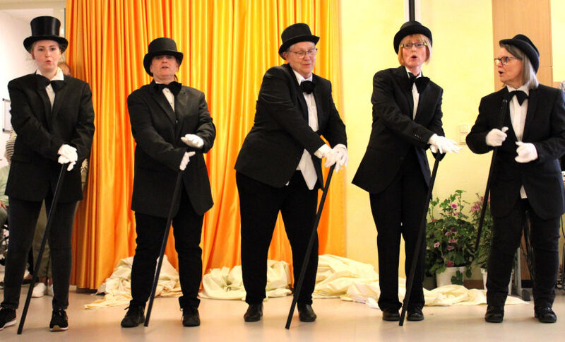 Nach einer offiziellen Begrüßung des Einrichtungsleiters Andreas Sümnik und einigen Worten des hauptamtlichen Vorstandes des AWO Kreisverbandes Essen, Claudia Osterholt und Oliver Kern, brachten die geladenen Künstler*innen die Bühne zum Wackeln. Auf „Die Fellows“ und „Die Blauen Jungs“ war verlass und auch die Kindertanzgruppen der Tanzschule „Dance & more“ und der „Rumbacher Narren“ brachten mit jeder Menge Energie und Können die Bewohner*innen zum Staunen. Zum Höhepunkt des Festes hatte die hauseigene Gruppe „Tanzmaries“ wieder eine kleine Vorführung einstudiert. Nach dem Motto „Schwarz und Weiß“ tanzten sie als „Die 3 von der Tankstelle“ und die „Comedian Harmonists“ zu den Liedern „Mein kleiner grüner Kaktus“, „Ich wollt ich wär‘ ein Huhn“ und „Ein Freund, ein guter Freund“. Und auch der Sitztanz zum Mitmachen durfte nicht fehlen.