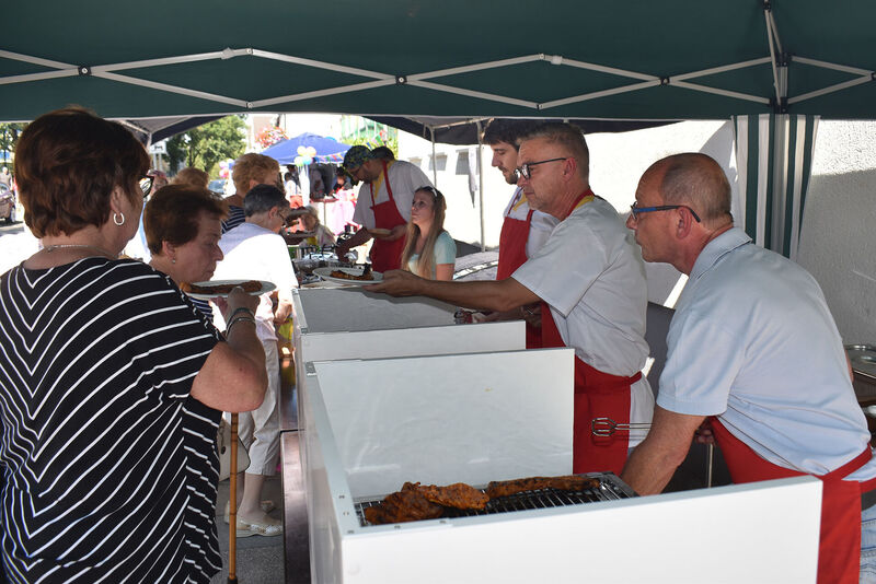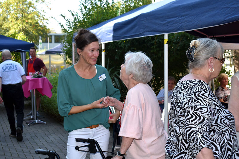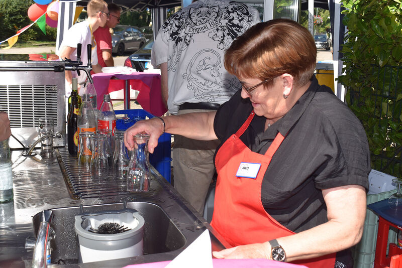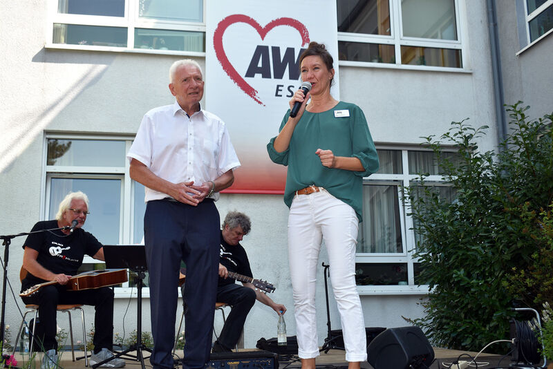 Bei der Begrüßung betonte Einrichtungsleiterin Anja Lohbeck, dass sie sich freue, nach dem verregneten Sommerfest im letzten Jahr wieder einmal die Wärme und den Sonnenschein genießen zu können. Möglich wurde die bis zum Abend dauernde Veranstaltung durch die enge Zusammenarbeit der rund 25 ehrenamtlichen mit ebenso vielen hauptamtlichen AWO-Kräfte. Sogar die Familienangehörigen wurden eingespannt, um Bewohnern und Gästen einen fröhlichen Nachmittag zu bescheren. Gerade auf den bei der AWO nicht wegzudenkenden ehrenamtlichen Einsatz wies der AWO-Kreisvorsitzende Klaus Johannknecht bei seiner Begrüßung hin. Wer bei der Begrüßung den AWO Geschäftsführer Oliver Kern vermisste, fand ihn an einem der heißesten Arbeitsplätze des Tages. Als ehrenamtlicher Helfer absolvierte er am Grill über die volle Festdistanz eine „Kern-Arbeitszeit“. (Bericht dazu an anderer Stelle.)