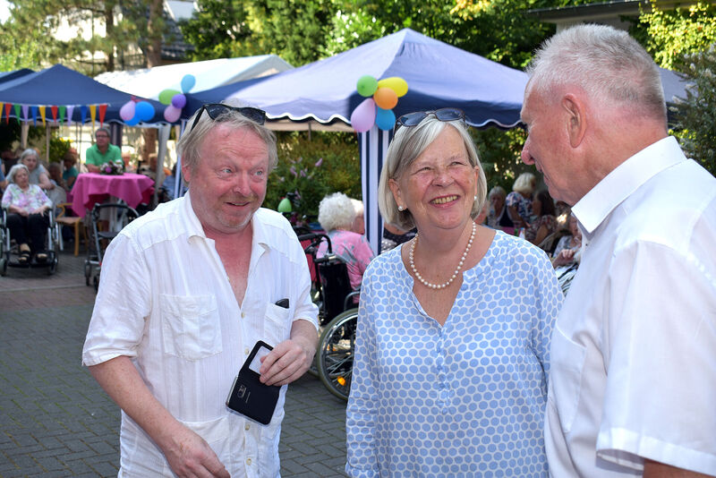 So reichhaltig und abwechslungsreich das Angebot an Speisen und Getränken war, so präsentierte sich auch das Unterhaltungsangebot auf und vor der Bühne. Mit unterhaltsamen Liedern und beliebten Melodien, die äußerst entspannt präsentiert wurden, machte das „Duo Fröhlich“ seinem Namen alle Ehre. Von der Waterkant in Überruhr, wo die „Blauen Jungs“ im Kurt-Schumacher-Zentrum der AWO ihren Heimathafen haben, brachte der Seemannschor zünftige Shanties mit nach Holsterhausen. Auf eine bunte Reise durch die Welt der Schlager nahm dann zum Finale in bewährter Manier Hansi Hossa die Bewohner und Gäste des AWO-Pflegeheims mit. Für alle Beteiligten bleibt nur zu hoffen, dass sich im nächsten Jahr der Himmel beim Sommerfest wieder so festtagsblau präsentiert.