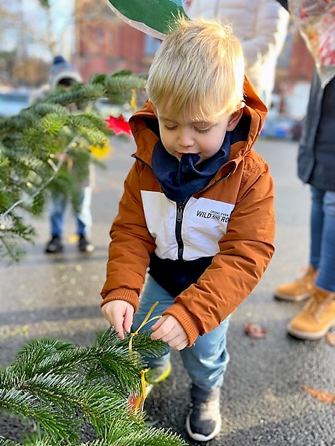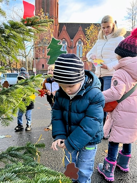 Kinder der AWO Kita Zeche Helene helfen beim Schmücken