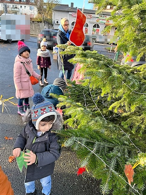 Pünktlich zum ersten Advent hat die Stoppenberger Werbegemeinschaft wie jedes Jahr auf dem Markt eine Weihnachtstanne aufgestellt. Traditionell verschönern Kinder einer Stoppenberger Kita diesen Baum mit selbst gebasteltem Weihnachtsschmuck. Dieses Jahr durften die Kinder der AWO Kita Zeche Helene an der Twentmannstraße stolz ihre Lebkuchenmännchen, Sterne, Stiefel und Tannenbäume aufhängen. Als Dankeschön bekam jedes Kind von der Sparkasse Essen eine prall gefüllte Nikolaustüte geschenkt.
