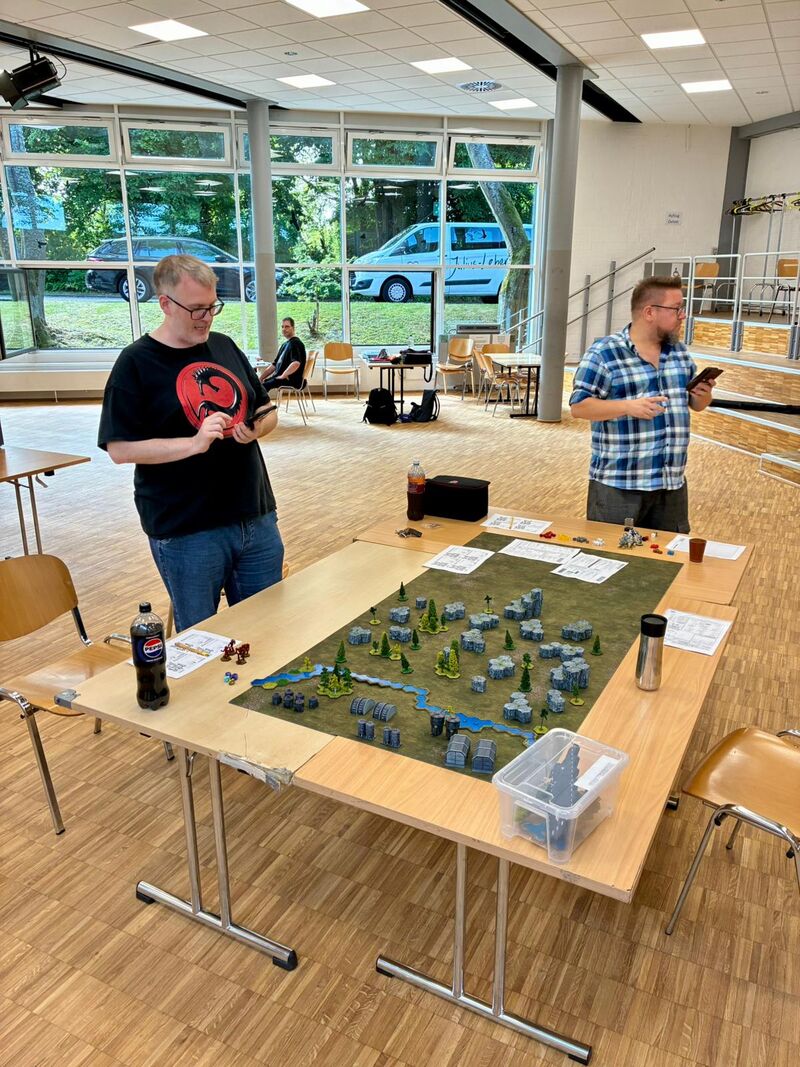 Natürlich geht es um den Spaß am Spiel, um Freundschaften und soziale Kontakte pflegen, bei den Spieler*innen im „Julius“ kommt aber auch noch eine andere Komponente hinzu, die Liebe zum Basteln und zum Detail. Spielefläche, Gebäude, Landschaften, Figuren: Vieles davon ist in Heimarbeit entstanden