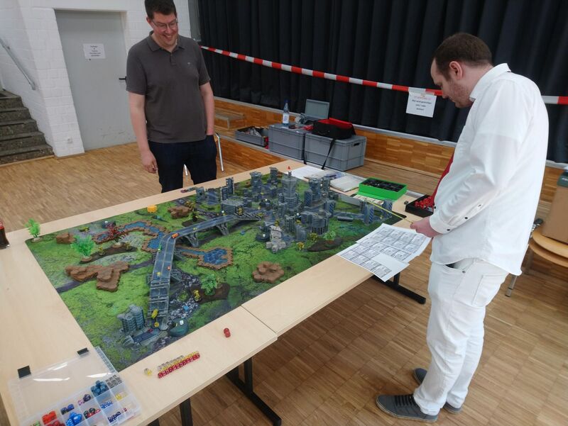 „Wir spielen ,Battletech: Alpha Strike‘, eine deutlich gestraffte Variante von ,Battletech‘. ,Battletech‘ ist mit über 40 Jahren ein Klassiker in der Tabletop-Szene“, berichtet Kai Konschak, Kopf der Gemeinschaft „Alpha Strike im Pott“. Seit Anfang des Jahres treffen sich er und bislang bis zu 25 Gesinnungsgenossen, bauen aufwendig ihre zum Teil selbst gebastelten, bemalten oder im 3-D-Drucker erstellten Spielflächen, Landschaften, Gebäude, Fahrzeuge und vieles mehr auf und versenken sich in ihre Spielzüge. Tabletop nennt man das auch, das heißt nicht viel mehr, als dass sich die Spieler*innen physisch an einem Tisch zusammenfinden und die folgende(n) Stunde(n) intensiv miteinander in einem Raum verbringen – was in heutigen Zeiten ja nicht unbedingt immer so gegeben sein muss.