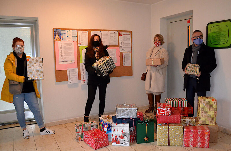 Nicole Rafalski, Marketingleiterin von Sutter LOCAL MEDIA, kam selbst zur Verteilung beim Josef-Boestfleisch-Haus vorbei: „Wir haben im Foyer unseres Unternehmens am Berthold-Beitz-Boulevard einen Weihnachtsbaum platziert, unter den die Kolleg*innen die Pakte in einem Wert von 15 bis 20 Euro legen konnten. Eingepackt hatten sie zum großen Teil Lebensmittel oder Drogerieartikel – Dinge, die auch wirklich Sinn machen“, berichtet sie: „Nachdem wir im vergangenen Jahr eine ähnliche Aktion für Kinder gestartet hatten, waren diesmal die Senior*innen dran. Sie leiden sehr unter den Einschränkungen in Corona-Zeiten.“