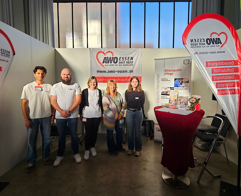 Wie werde ich Erzieherin? Wie viel Geld verdiene ich als Pfegefachkraft? Wie werde ich als Azubi bei der AWO Essen betreut? Das sind nur einige der vielen Fragen, denen sich die Vertreter*innen der AWO Essen bei der Ausbildungsmesse Vocatium auf dem Gelände des Welterbes Zollverein gestellt haben. Zwei Tage lang standen aktuelle Auszubildende (Erzieher*in, Pflegefachkräfte, Pflegefachassistent*in), Praxisanleiter*innen aus der Pflege, Kita-Leitungen und Vertreter*innen aus Personalabteilung und des AWO Bildungsinstitutes Pflege (BAA) sowie der Referatsleiter Stationäre Pflege bei der AWO, Gereon Unnebrink, über 100 Schüler*innen aus Essen Rede und Antwort.