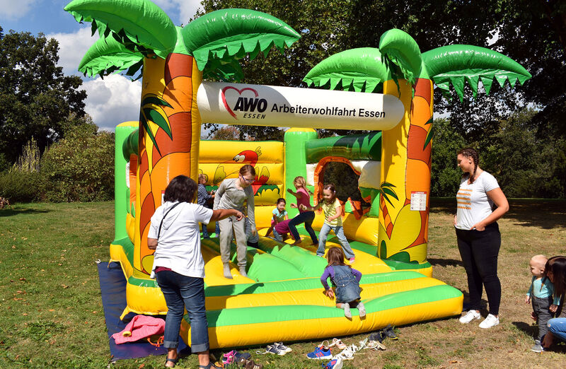 Die Kinder ließen sich nicht beeindrucken, sie vergnügten sich weiter beim Dosenwerfen, an der Kisten-Rollbahn oder auf der AWO-Hüpfburg, als Thomas Kutschaty das Kinderfest im Ludwig-Kessing-Park in Überruhr offiziell eröffnete. Der Essener SPD-Vorsitzende und Oppositionsführer im Landtag war trotz engen Terminkalenders zu der von der SPD, der AWO dem VKJ und anderen Partnern veranstalteten Fest gekommen, bot sich ihm als Schirmherrn der Veranstaltung die Möglichkeit, in lockerer Runde Gespräche mit den Eltern der spielenden Kinder und den vielen ehrenamtlichen Helfern zu führen.
