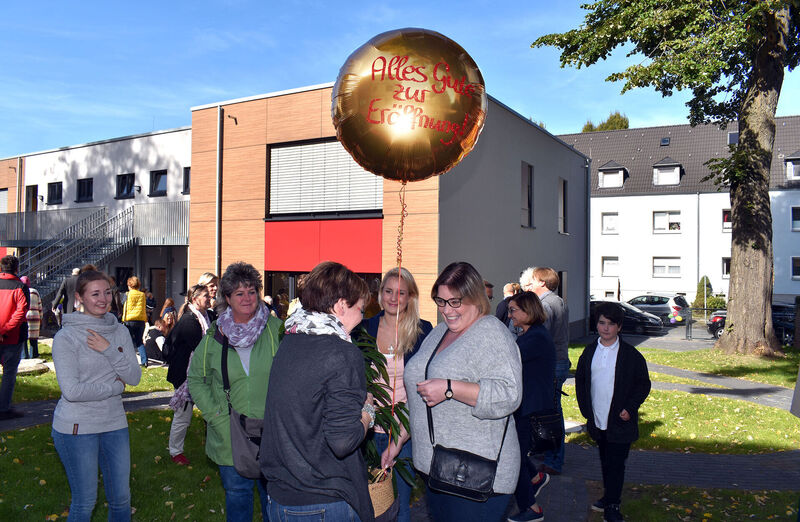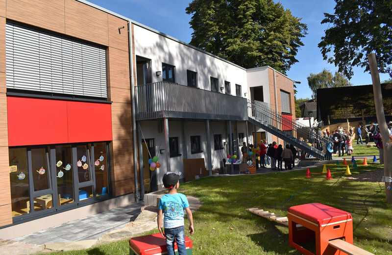 Offiziell nahm die Kita mitten im Bredeneyer Wohnquartier am Ende der Einigkeitstraße schon Anfang August den Betrieb auf. Jetzt, nachdem sich die 50 Kinder in den drei Gruppen aneinander gewöhnen konnten und die hellen und großzügigen Räume als ihr Reich erobert haben, feierten Eltern, Kinder und das zehnköpfige AWO-Team ihr großes Einweihungsfest. Katja Urban, die die Kita leitet, bedankte sich bei allen Beteiligten, dass die Eingewöhnungsphase so problemlos gemeistert wurde und sich alle jetzt in der neuen Einrichtung wohlfühlen können. Dem schlossen sich Andreas Lischka, Leiter der AWO Kita gGmbH, und der AWO Kreisvorsitzende Klaus Johannknecht an, die sich auch bei der Allbau GmbH, die das elegante Gebäude erstellten, für die gute Kooperation bedankten.