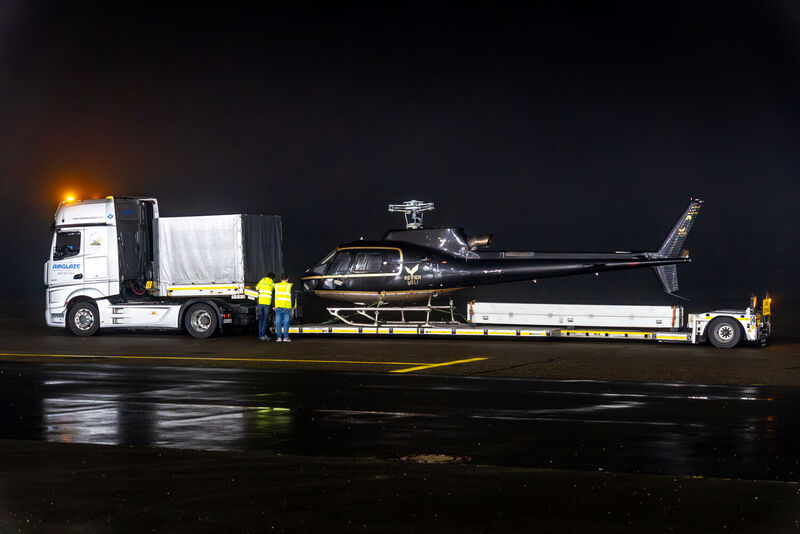 Ein kurzer Besuch im Tower – ohne Fotogenehmigung – ermöglichte einen Blick auf das Geschehen: Ein Fluglotse und eine Verwaltungsmitarbeiterin steuerten von dort den Betrieb. Vom angrenzenden Laufsteg aus ließ sich das neblige Gelände überblicken, während ein Hubschrauber auf einen Tieflader verladen wurde. Im Hangar überwintern mehrere Maschinen, andere standen auf dem Vorfeld. Die blauen Rollbahnrandfeuer und die hell erleuchteten Flächen schufen bei einsetzender Dämmerung eine fast mystische Stimmung.