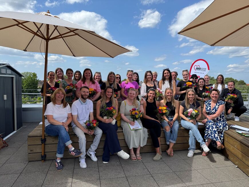 Bei strahlendem Wetter wurden jüngst die Absolvent*innen der Erzieher*innen- und Kinderpfleger*innen-Ausbildung auf der Dachterrasse der Geschäftsführung des AWO Kreisverbandes und AWO Kita gGmbH feierlich verabschiedet. Die Veranstaltung markiert nicht nur das Ende einer intensiven Ausbildungszeit, sondern auch den Beginn eines neuen beruflichen Kapitels für die frisch gebackenen Fachkräfte.