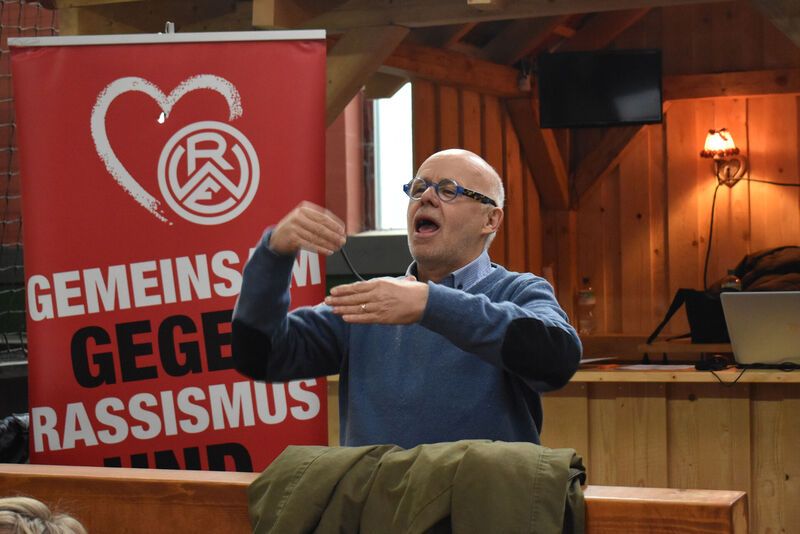 Im Mittelpunkt des Wettbewerbs liegt nicht der Kampf um Tore und Punkte, viel wichtiger ist es, schon bei der Aufstellung des eigenen Teams zu zeigen, dass Rassismus keine Chance hat. So ist es eine Grundbedingung, dass in den Mannschaften Spieler aus mindestens drei Herkunftsländern vertreten sein sollen. In diesem Jahr schaffte das Turnier etwas, was weder in den Vorstandsetagen noch im Parlament erreicht wird: es waren gleich viele weibliche und männliche Teams am Start. Darüber hinaus bewiesen die Kicker von der LVR David-Ludwig-Bloch-Schule für Hörgeschädigte, dass man auch mit Handicap beim Fußball ein erfolgreiches Team bilden kann. Darüber freute sich besonders Gebärden-Dolmetscher Peter Bergmann, der die Ansprachen bei der Begrüßung übersetzte.